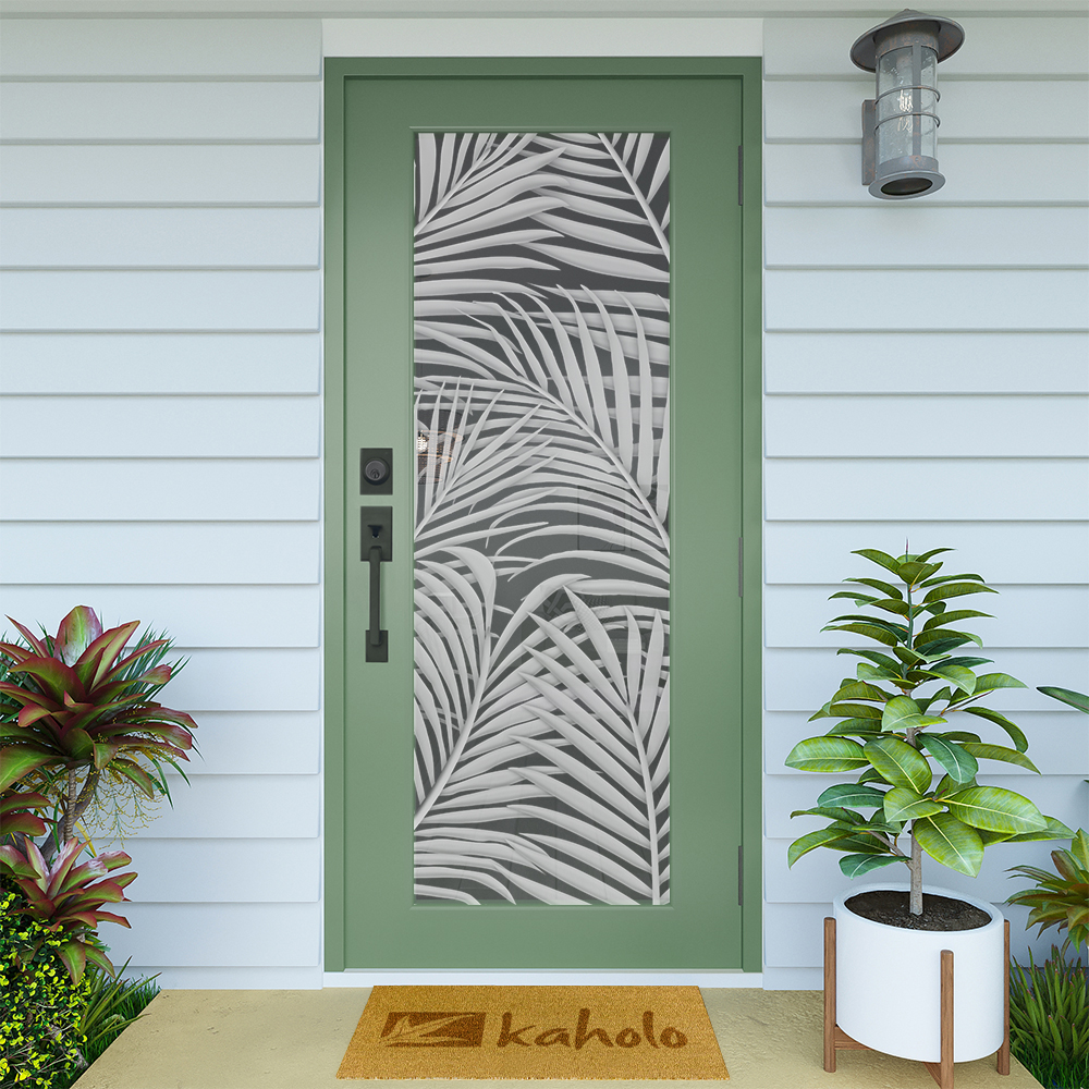Add an aesthetic touch and varying degrees of privacy to your glass windows and doors with Kaholo’s tropical designs. Get the look of real sand-blasted or acid-etched glass at a fraction of the cost! While our product looks like the real thing, it’s ecologically safer and cleaner than sand-blasting and acid-etching, and it’s replaceable because it doesn’t permanently damage the surface of your glass (does not permanently mar the glass).
