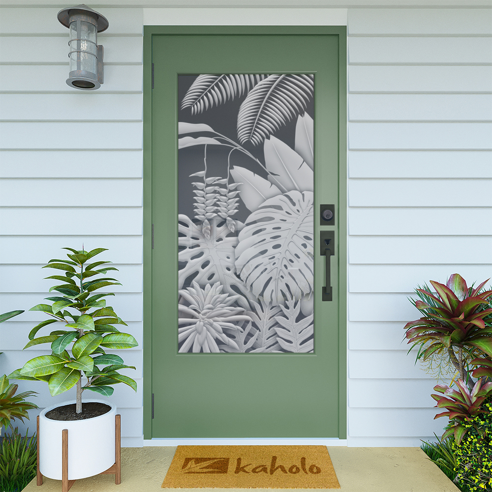 Kaholo’s DIY designs are created using the window film industry’s best, most durable window film materials, designed by experienced artists and manufactured with the latest large format printers. The level of detail halftones and gradient shading is clearly represented in every piece of art and seldom found in the industry. Perfect on any door, kitchen cabinet, sidelight, picture window, pantry door, shower door, bathroom mirror and more – get creative! Get tropical! Get Kaholo Glass Art!