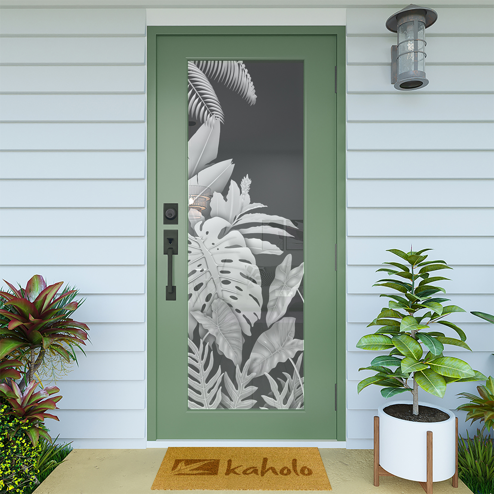 Kaholo’s DIY designs are created using the window film industry’s best, most durable window film materials, designed by experienced artists and manufactured with the latest large format printers. The level of detail halftones and gradient shading is clearly represented in every piece of art and seldom found in the industry. Perfect on any door, kitchen cabinet, sidelight, picture window, pantry door, shower door, bathroom mirror and more – get creative! Get tropical! Get Kaholo Glass Art!