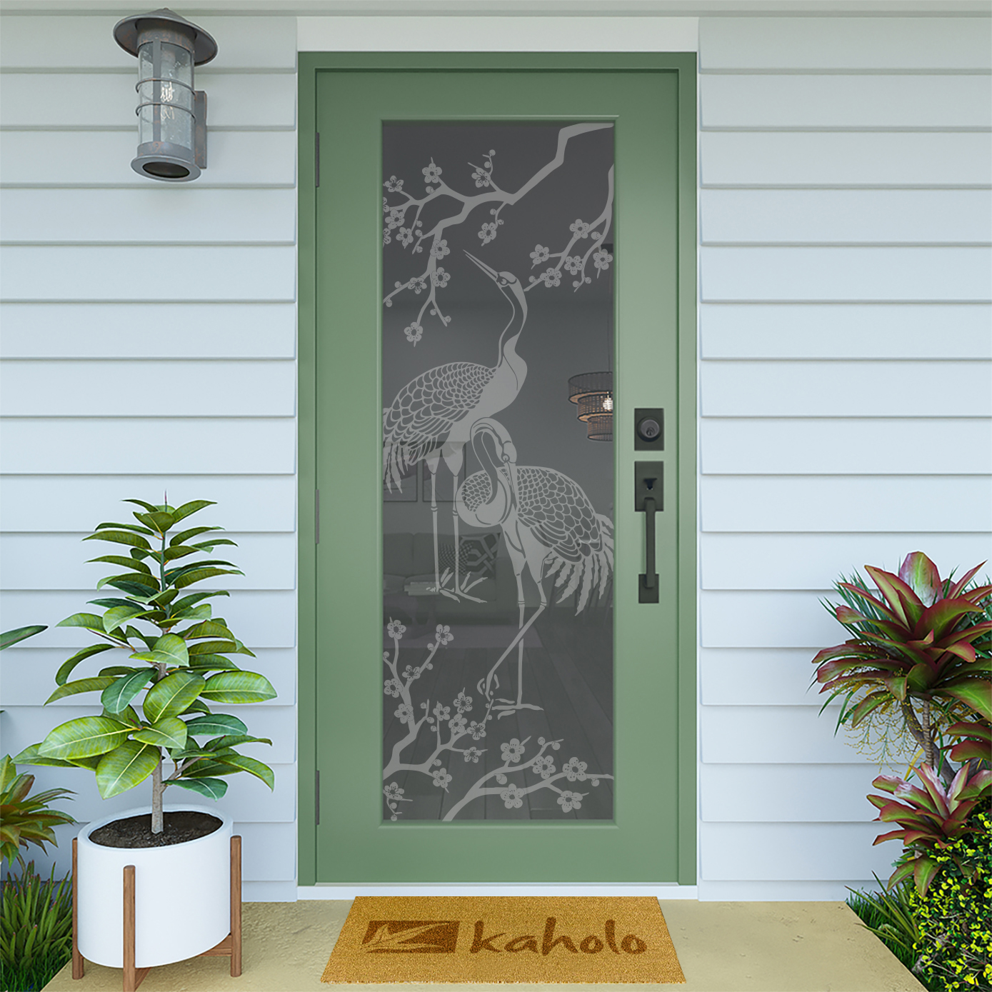 Kaholo’s DIY designs are created using the window film industry’s best, most durable window film materials, designed by experienced artists and manufactured with the latest large format printers. The level of detail halftones and gradient shading is clearly represented in every piece of art and seldom found in the industry. Perfect on any door, kitchen cabinet, sidelight, picture window, pantry door, shower door, bathroom mirror and more – get creative! Get tropical! Get Kaholo Glass Art!