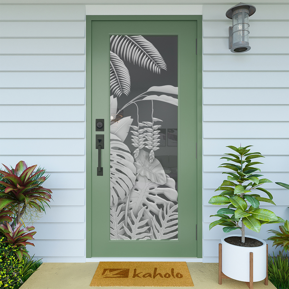 Kaholo’s DIY designs are created using the window film industry’s best, most durable window film materials, designed by experienced artists and manufactured with the latest large format printers. The level of detail halftones and gradient shading is clearly represented in every piece of art and seldom found in the industry. Perfect on any door, kitchen cabinet, sidelight, picture window, pantry door, shower door, bathroom mirror and more – get creative! Get tropical! Get Kaholo Glass Art!