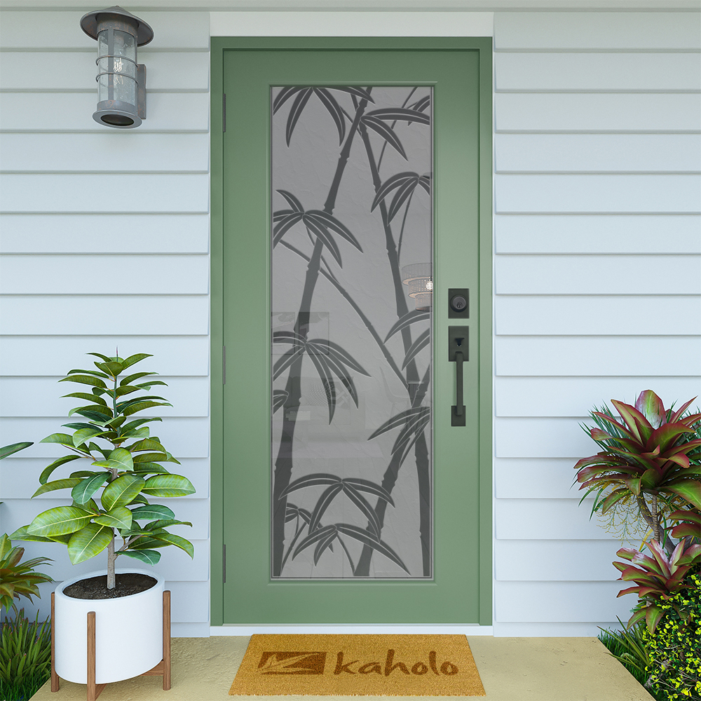 Add an aesthetic touch and varying degrees of privacy to your glass windows and doors with Kaholo’s tropical designs. Get the look of real sand-blasted or acid-etched glass at a fraction of the cost! While our product looks like the real thing, it’s ecologically safer and cleaner than sand-blasting and acid-etching, and it’s replaceable because it doesn’t permanently damage the surface of your glass (does not permanently mar the glass).